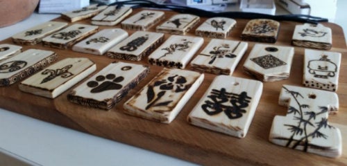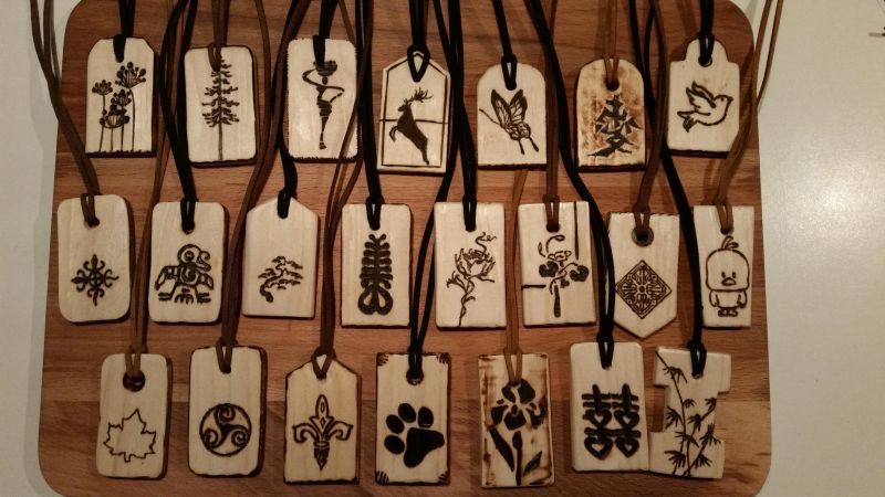 Hangers op hout gebrandschilderd